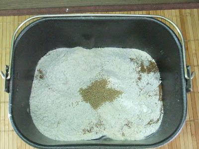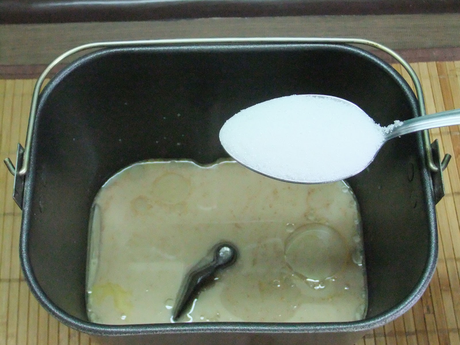 Подготовленную смесь заливаем в емкость хлебопечки,следующий компонент-1стол. ложка растительного масла.