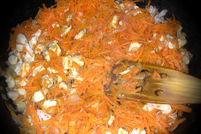 1. Куриное филе помыть и высушить после чего нарезать небольшими кусочками. Лук нужно почистить и мелко порезать для обжарки. Обжарить мясо с луком в разогретом растительном масле. Добавим морковь по-корейски, кукурузу, томатный соус, майонез и нарезанный кусочками огурец. Соль, перец и пряности добавляем по вкусу. Подержать массу на огне 5-7 минут, после чего снять с огня и добавить рубленую зелень. Наша начинка готова!