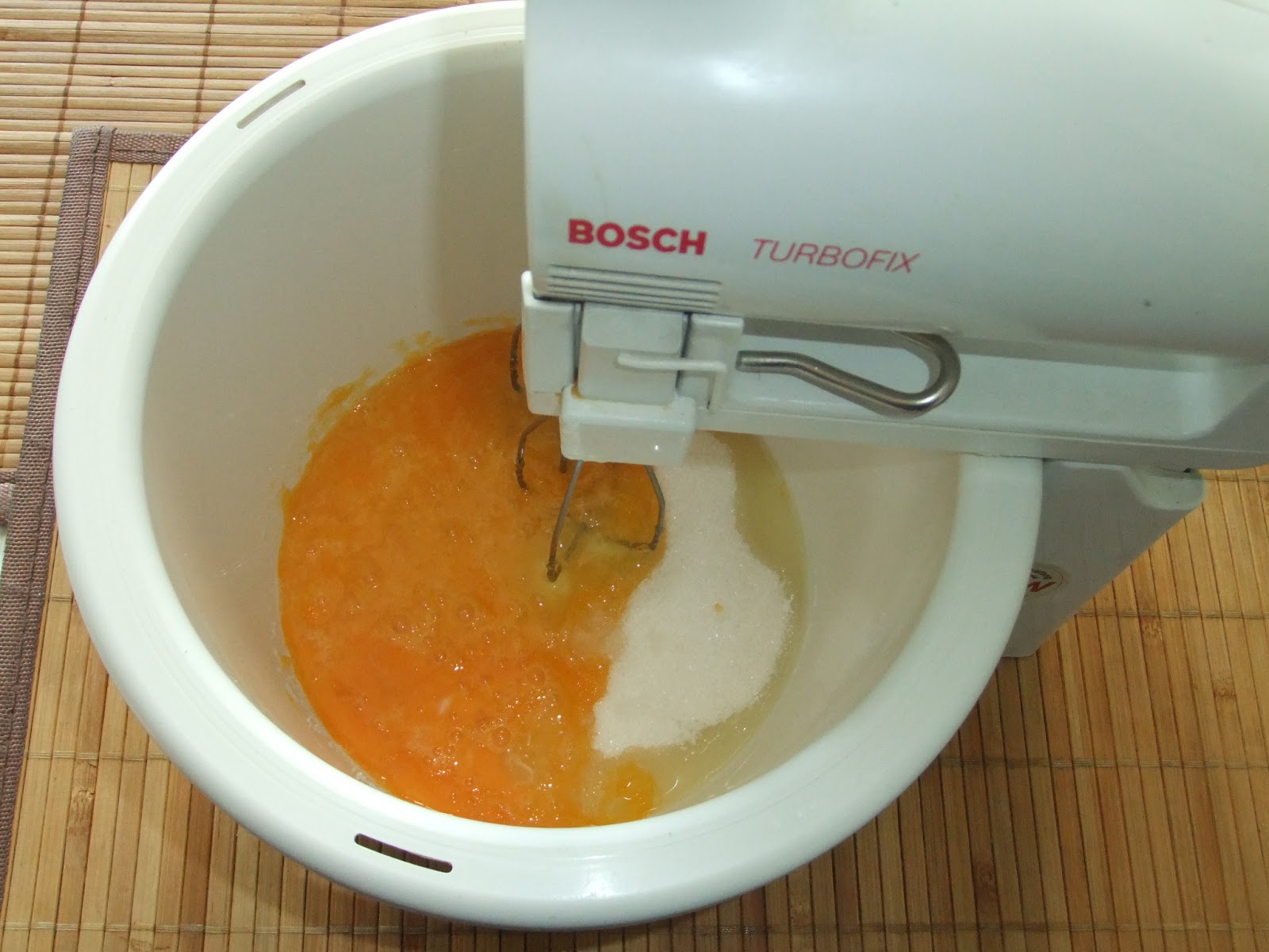 1. Яйца, взбиваем с 1-им стаканом сахара в миксере..