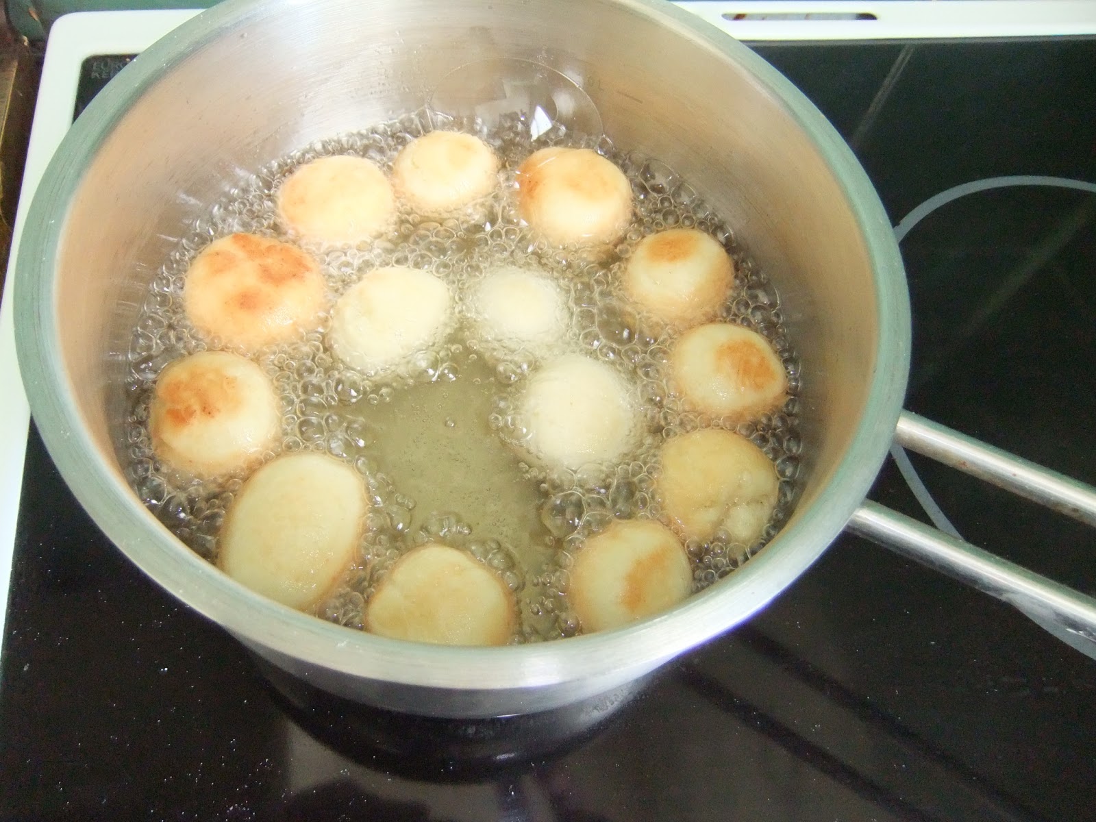 Вспоминаем технику безопасности работы с кипящим маслом и аккуратно опускаем готовые шарики в посуду, как показано на картинке.